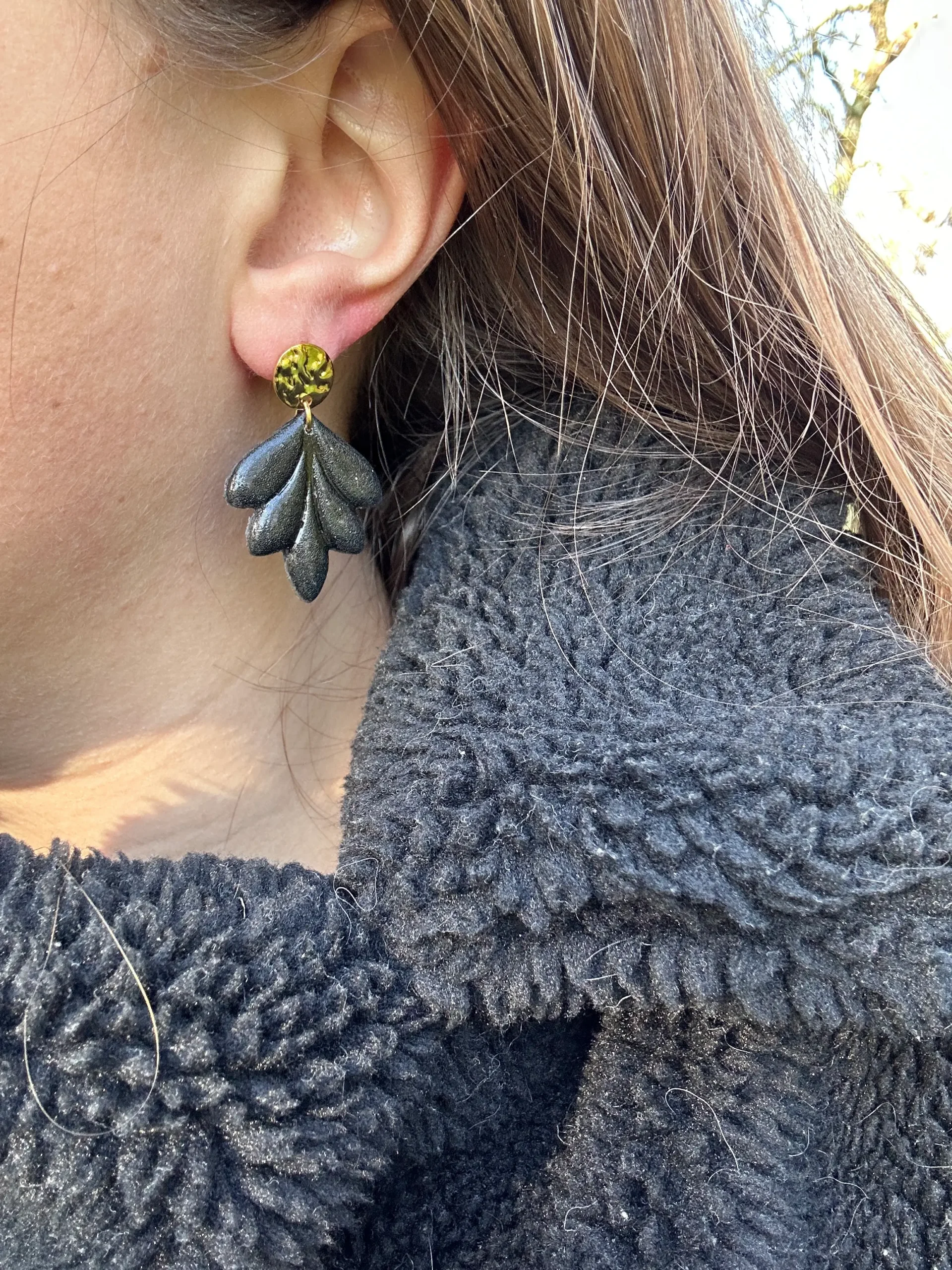 Grâce à leur silhouette florale travaillée avec soin, ces boucles d’oreilles évoquent la douceur des décorations d’hiver tout en conservant un charme intemporel. Les paillettes intégrées à la matière créent de magnifiques reflets qui captent la lumière et apportent un scintillement subtil mais captivant. Ainsi, elles deviennent les bijoux de Noël idéaux pour sublimer vos tenues, que ce soit pour un repas en famille, une soirée festive ou un événement spécial.