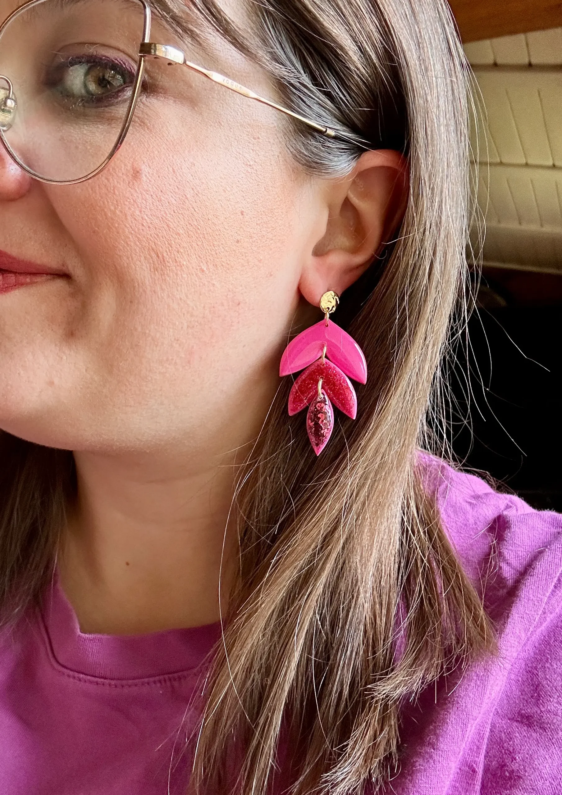 Boucles d’oreilles pendantes – Rose framboise