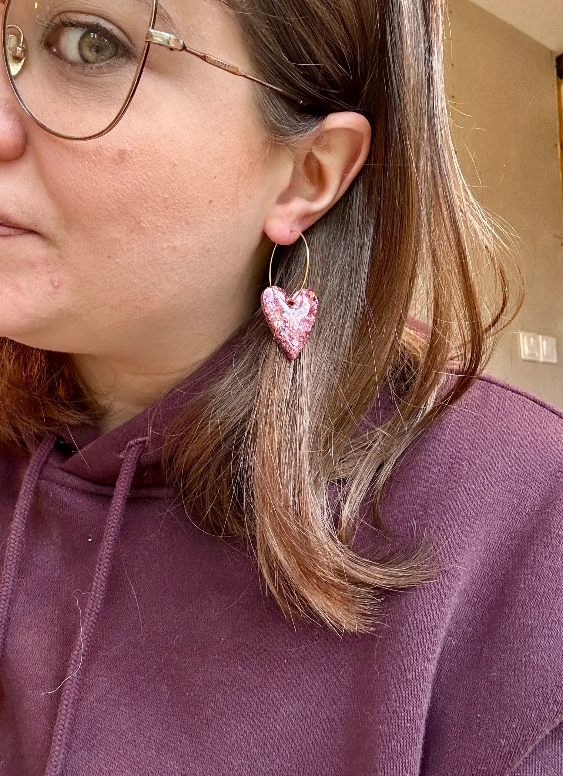❤️ Boucles d’oreilles résine cœur – Un bijou pétillant et tendance
