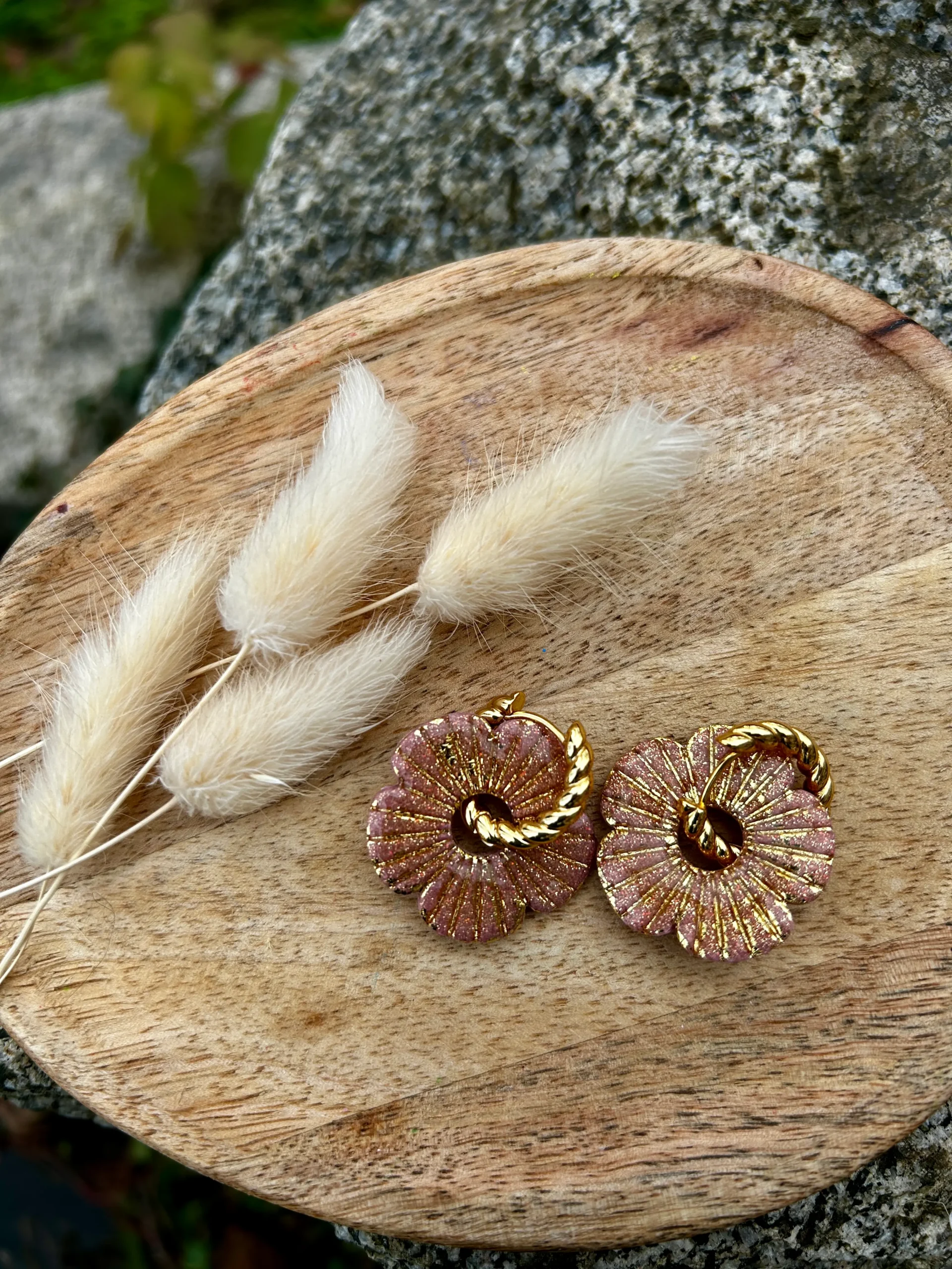 Ces pampilles sont disponibles dans la catégorie Glamour, avec des teintes élégantes et sophistiquées : bordeaux doré, noir doré et rose doré. Associées aux paillettes révélées par la résine, ces couleurs apportent une touche chic et intemporelle, idéale pour une allure raffinée de jour comme de nuit.