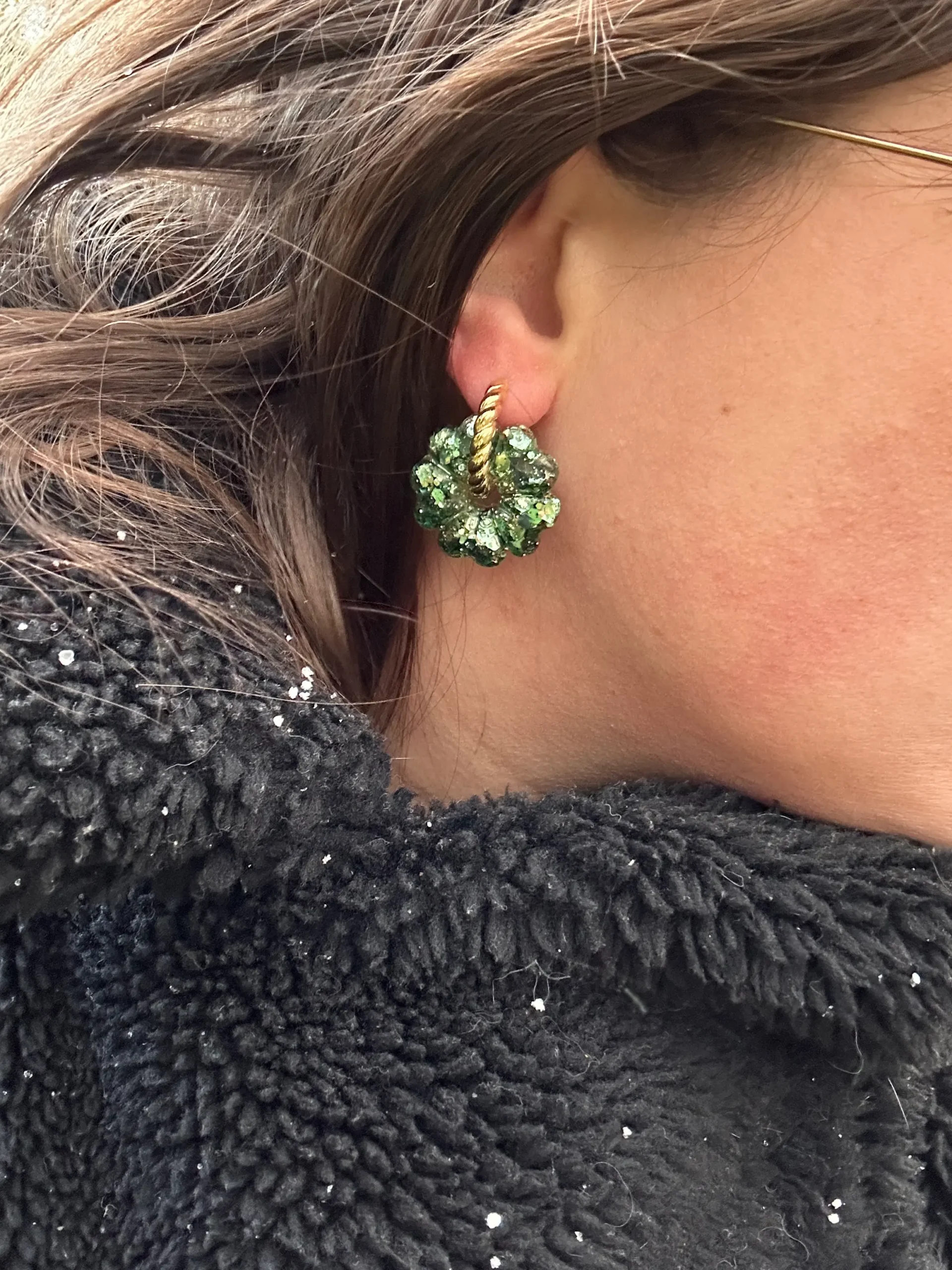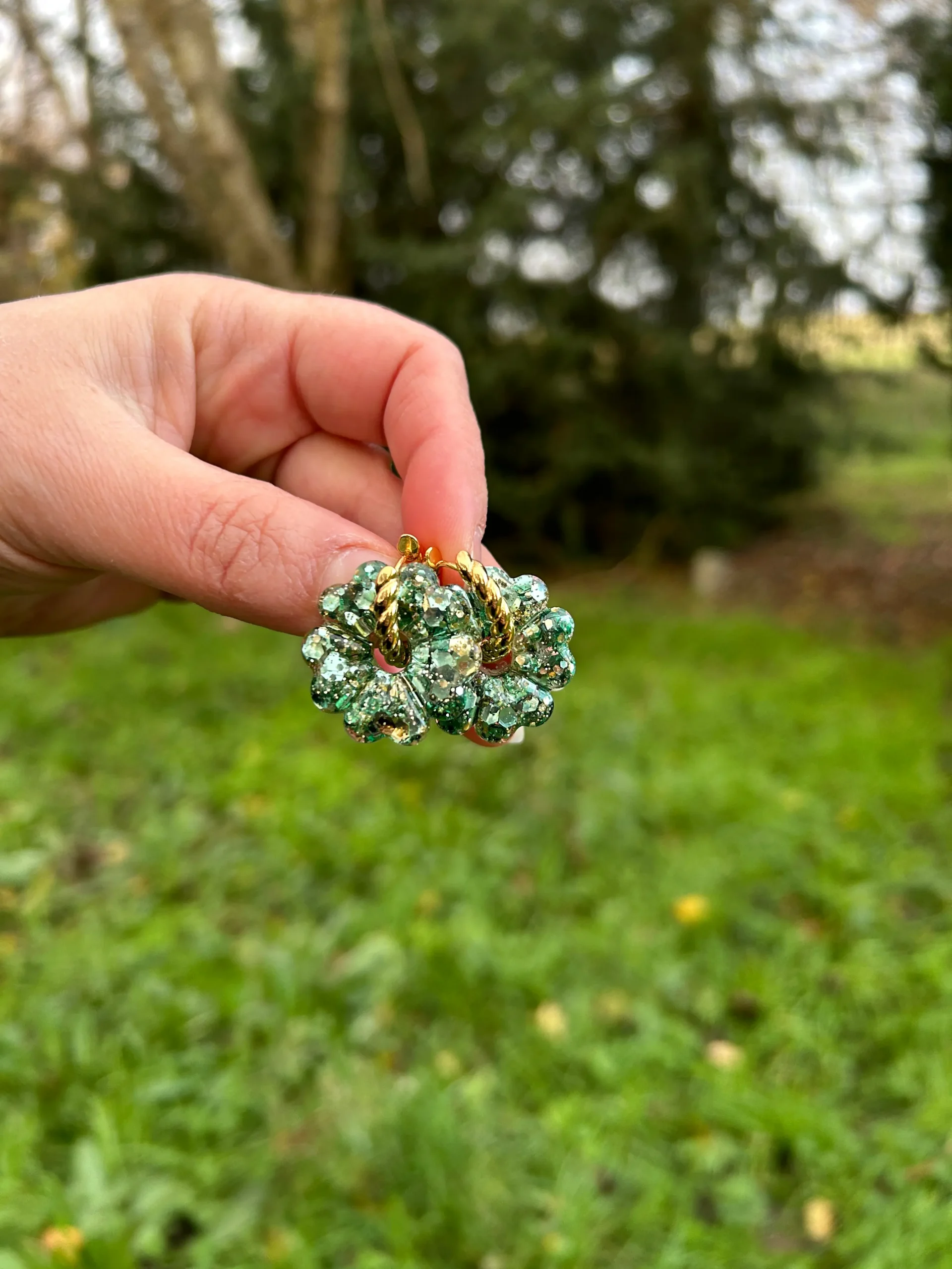 Pampilles en résine pailletées – Fleur vert émeraude