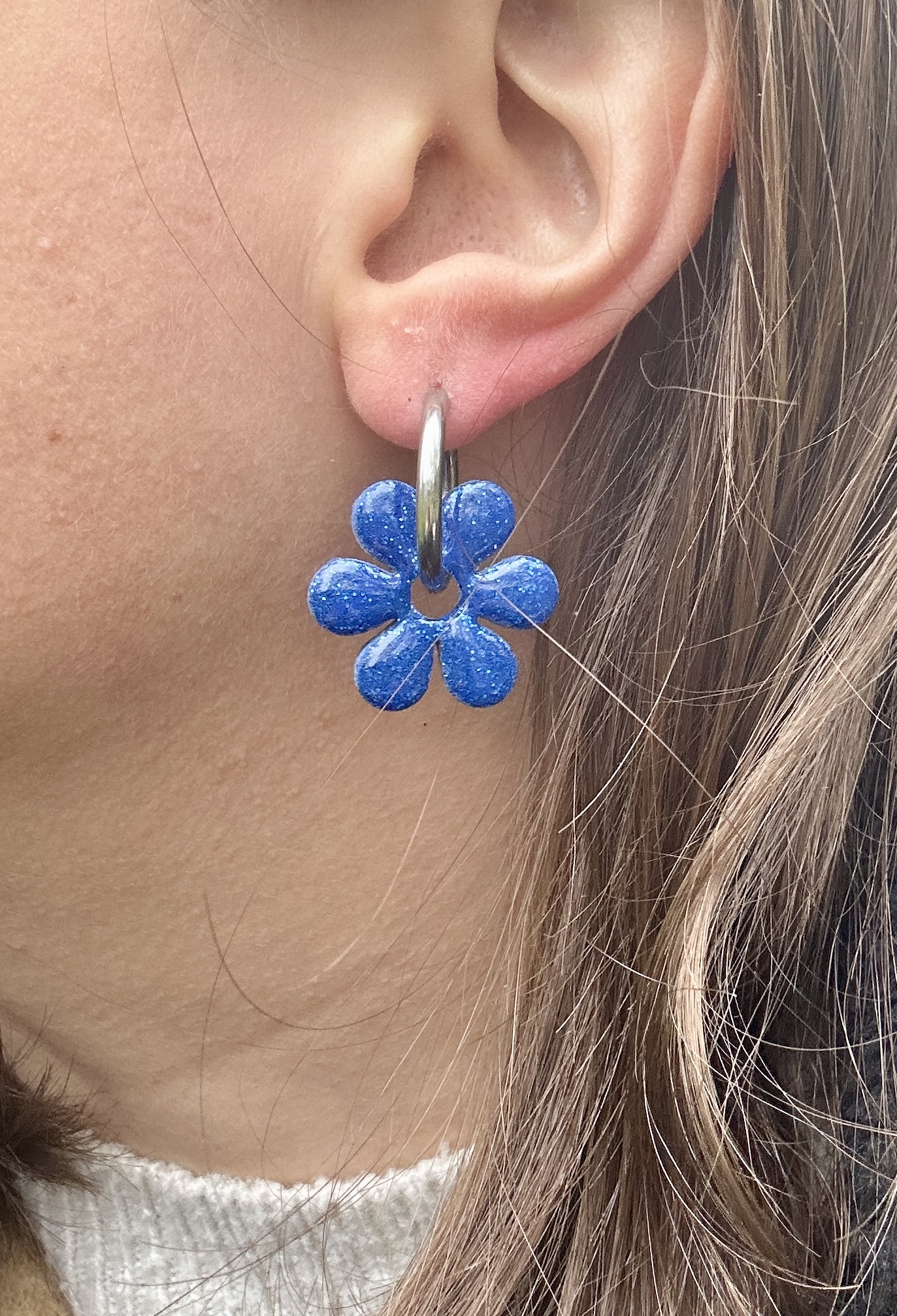 Découvrez nos pampilles de Noël en forme de fleur, réalisées à la main en pâte polymère. Leur teinte bleue vibrante et leurs paillettes scintillantes captent magnifiquement la lumière, offrant un accessoire idéal pour accompagner vos tenues festives. Pour sublimer encore davantage leur éclat, chaque pampille est recouverte d’une fine couche de résine. Cela apporte à la fois brillance et solidité. Ces détails minutieux rendent chaque pièce unique et résolument élégante.